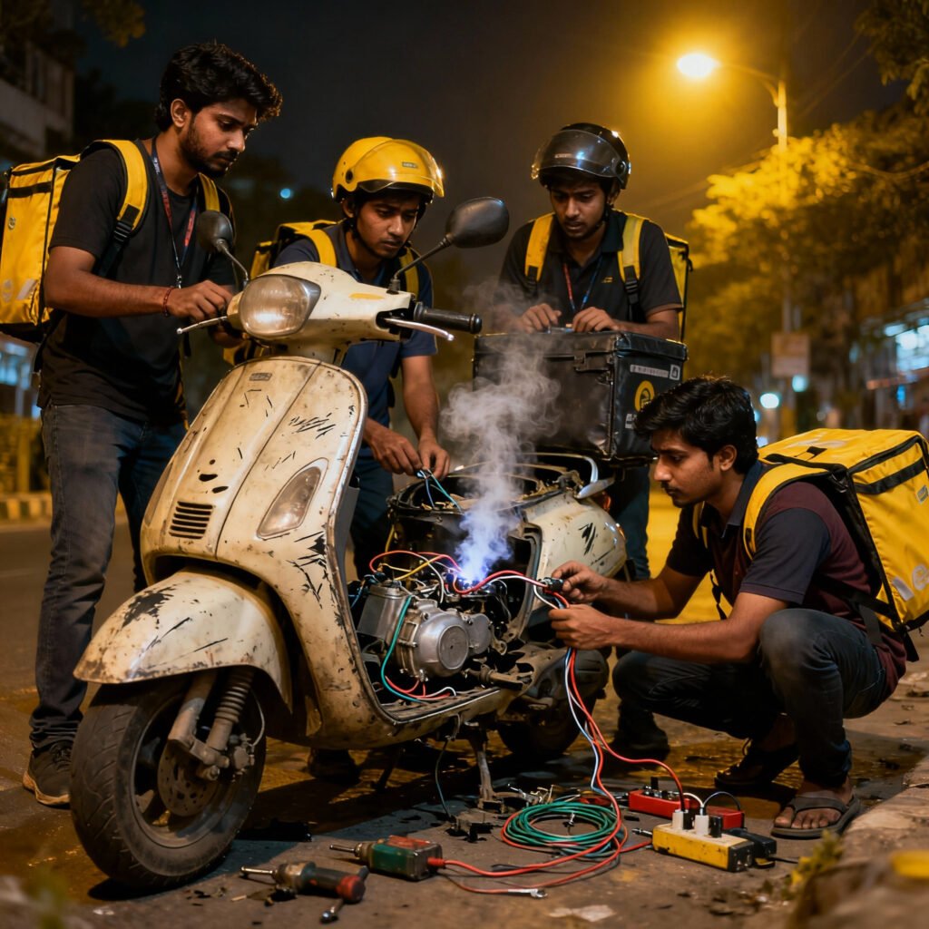 Prenons un cas réel, vu en plein Bruxelles : un livreur bien installé, qui tourne facile à 4000 € brut par mois — oui, tu as bien lu, pas un étudiant fauché à mi-temps —, avec son scooter complètement à l’agonie. Jamais entretenu, jamais révisé, rien. Résultat : le tas de ferraille refusait obstinément de démarrer.