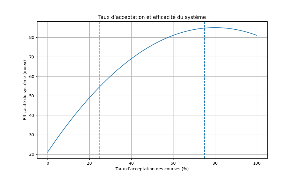 | Taux d’acceptation | % de courses acceptées | Stabilise ou perturbe le flux |