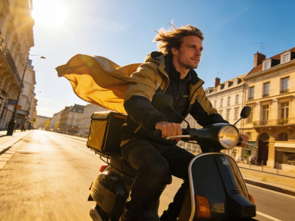 Rouler sous la pluie, dans le froid ou avec un vent constant finit toujours par peser, physiquement comme mentalement. Les trajets sont plus longs, les gestes plus lourds, et chaque livraison demande un effort supplémentaire. Le casque devient étouffant, les vêtements s’alourdissent, et la fatigue s’installe plus vite.